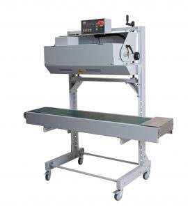 Band sealing machines seal polythene, polypropylene, PVC, laminate aluminium-film, and paper-poly coated plastic bags – a continuous packaging line in one compact machine that seals the tops of the bagged products as they travel along a conveyor. The Venus All In Vertical Band Sealer is ideal for sealing coffee bean bags and other stand up pouches.