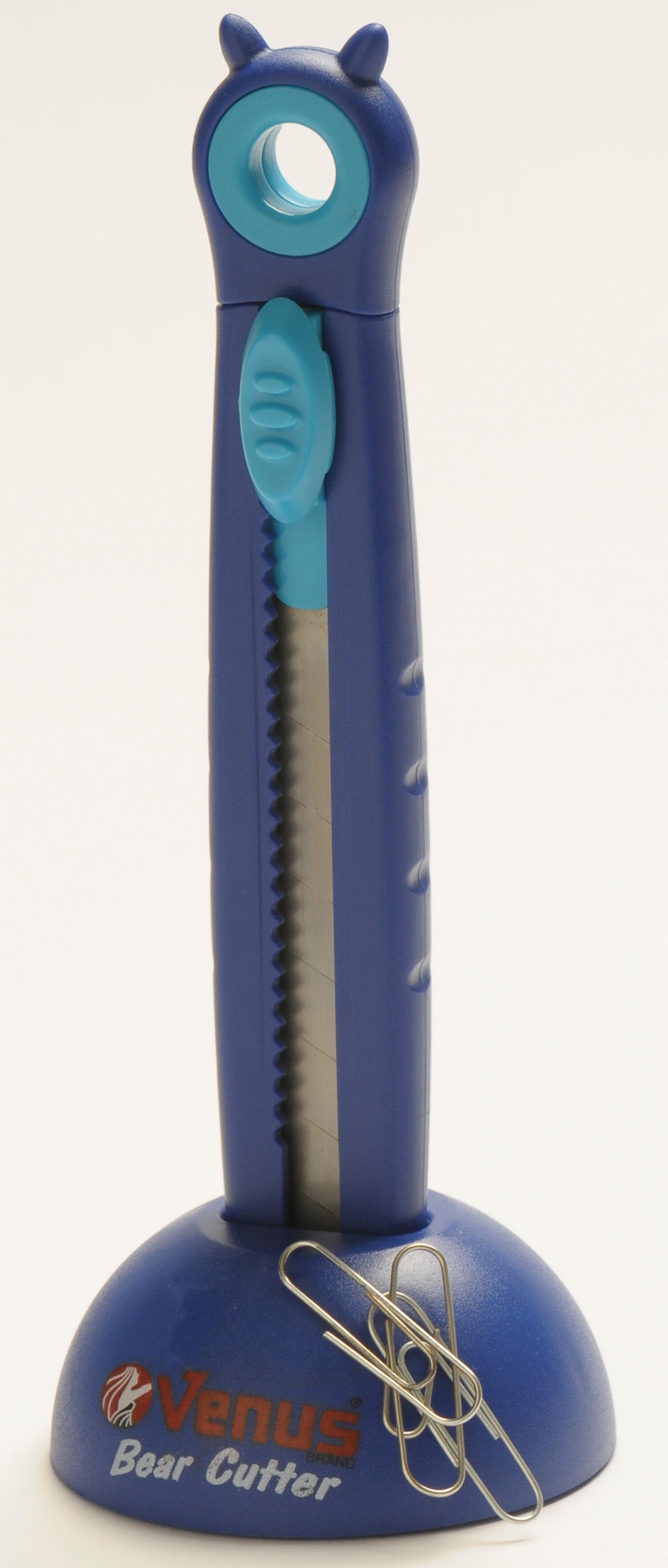 Bear shaped hand-held cutter with magnetic base in blue. Minimum order pack of 6. -