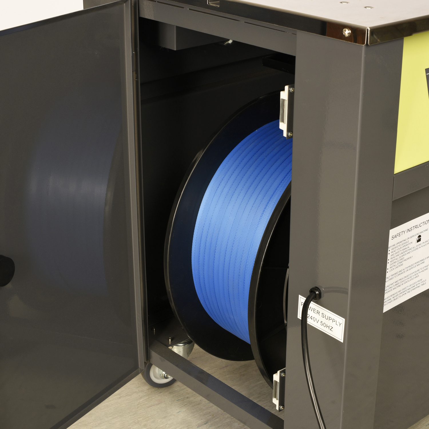 Our new VHPE10DD strapping machine is designed for 12mm polypropylene (pp) strap and features automatic strap feed, electronic tension control and only requires single phase power. This machine is reliable, easy-to-use and comes with lockable castors and a safety power cut switch.- Strap width: 12mm.