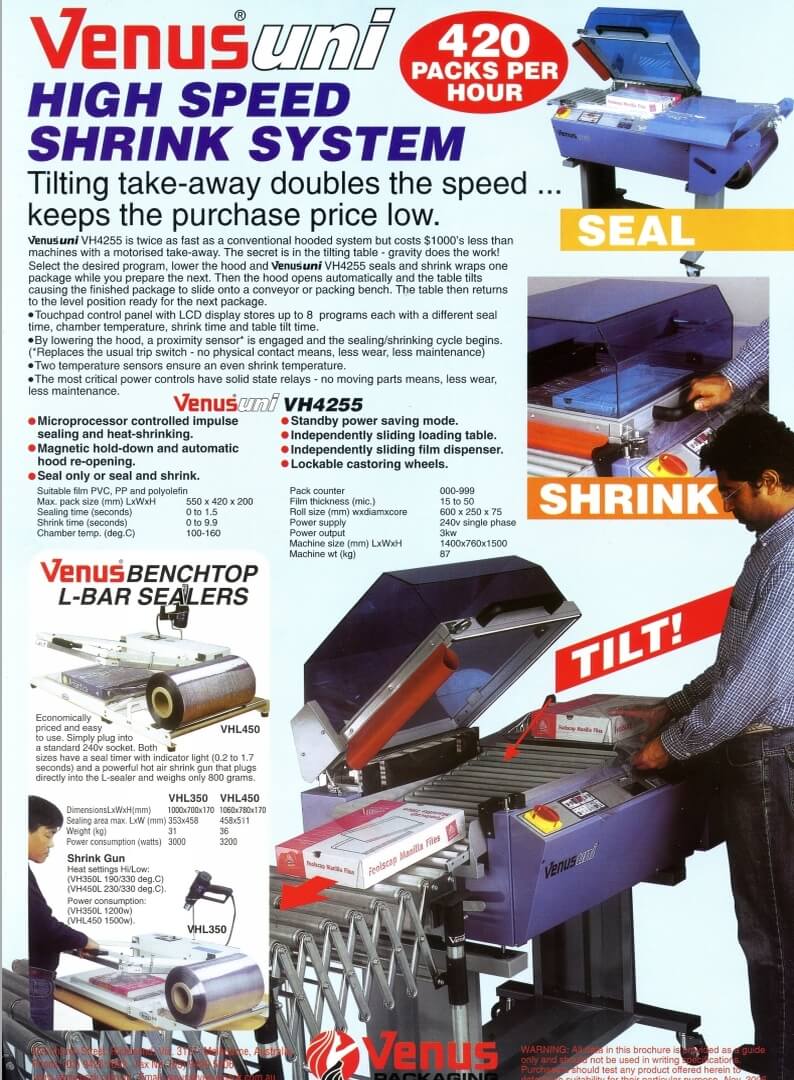 Venus L Bar Sealer (pictured with Shrink Tunnel) VH870L