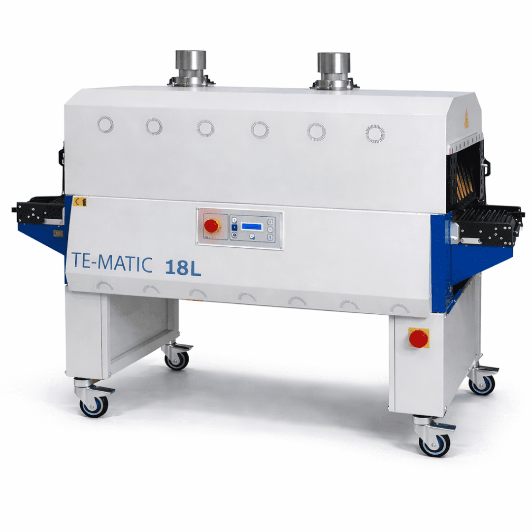 A large double chamber shrink tunnel which can be used in combination with Audion L-bar Sealer (not pictured). The VT18L shrink tunnel comes with adjustable shrink tunnel temperature & conveyer speed to suit specifications for different packing runs. The tunnel conveyor comes with silicone coated rotating rollers, a backlit control panel and automatic cool down function for end of shift.