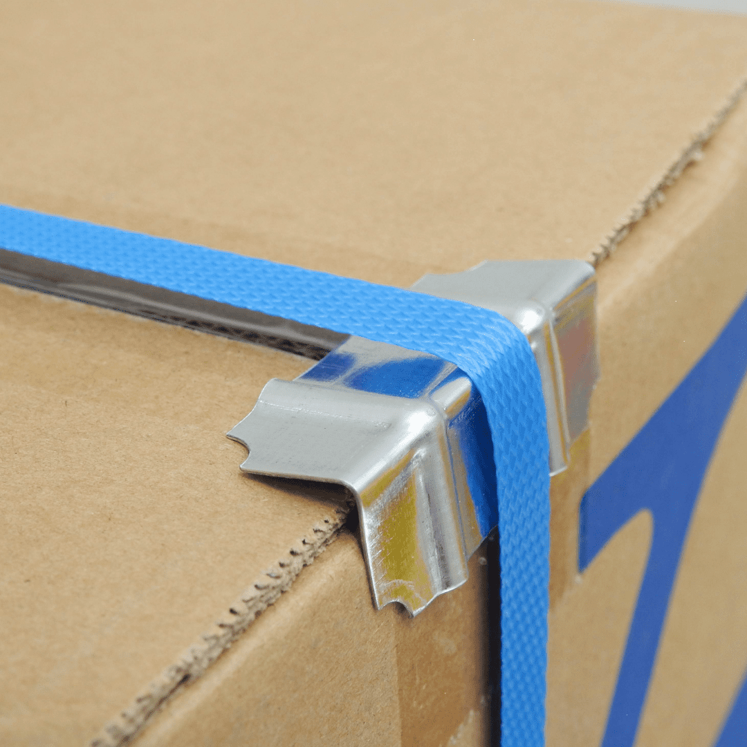Corner edge protectors stabilise pallet loads and prevents strapping from damaging cartons.