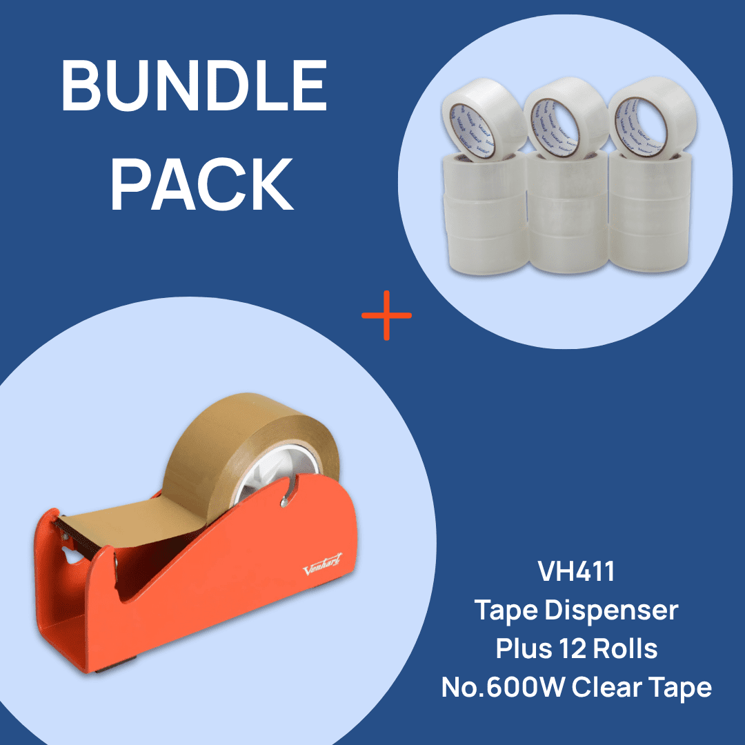 | BUNDLE102 | VH411 Metal Benchtop Tape Dispenser + 12 Rolls 600W Packaging Tape | 1 | $69.22 | |