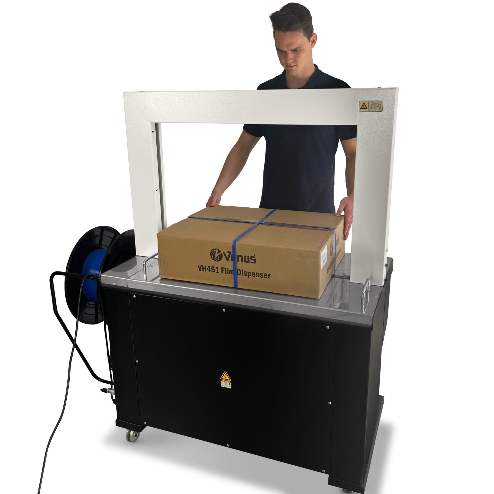 This Venhart fully automatic PP arch strapping machine is strong, lightweight and designed for minimum maintenance. The operating temperature is reached within 2 - 3 minutes and using the jog switch the strap is simply fed through the arch to the 'ready' position. Available to use in automatic or manual mode. 12 month warranty.